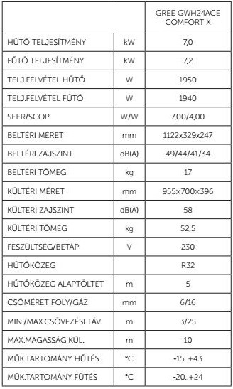 A Gree GWH24ACEXF-K6DNA1A Comfort Pro Inverteres Split klíma fontos tulajdonságai: